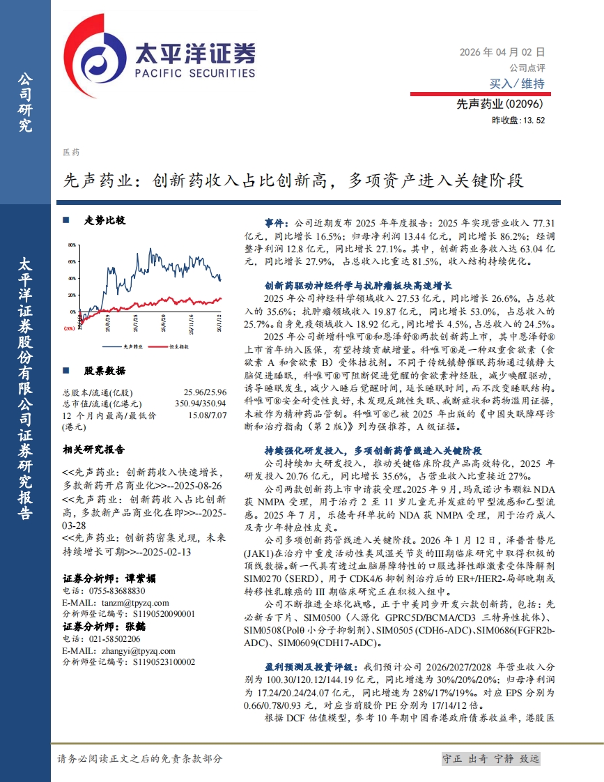 20260402-太平洋-先声药业-02096.HK-先声药业:创新药收入占比创新高,多项资产进入关键阶段(5页)