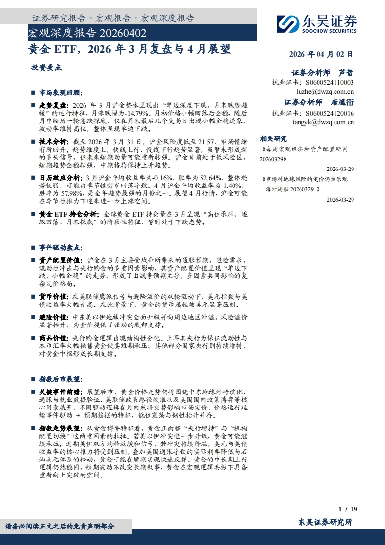 20260402-东吴证券-东吴证券-宏观深度报告:黄金ETF,2026年3月复盘与4月展望(19页)
