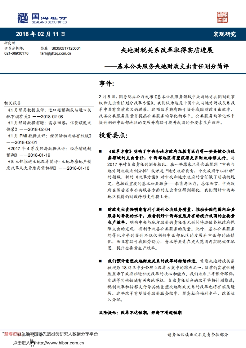 20180211-国海证券:基本公共服务央地财政支出责任划分简评-央地财税关系改革取得实质进展-7页