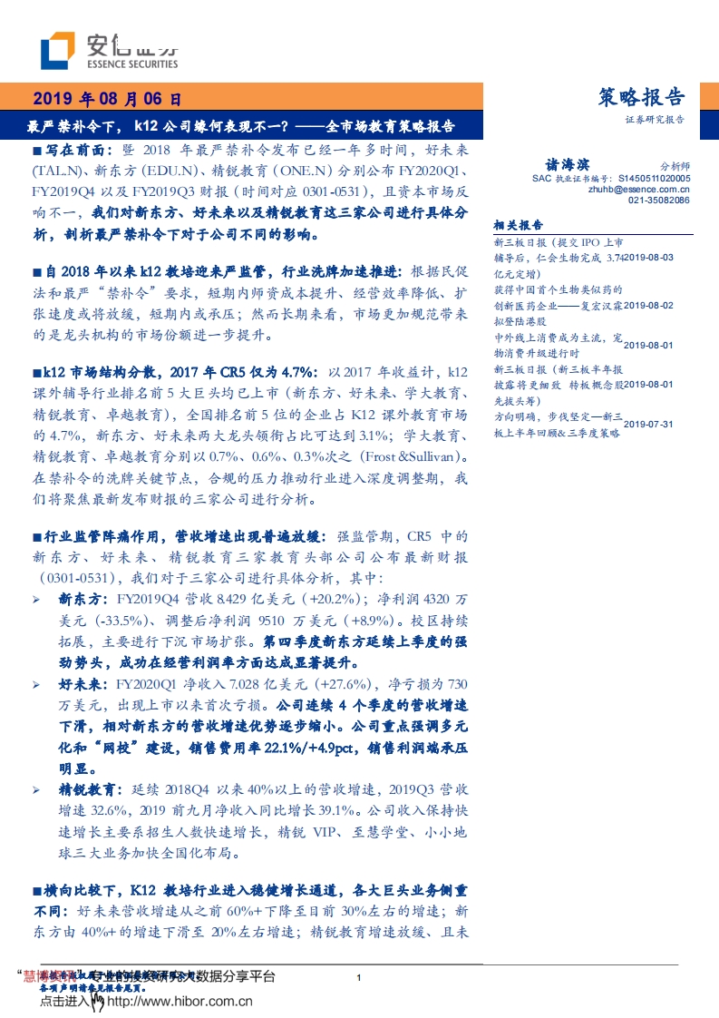 20190806-安信证券:全市场教育策略报告-最严禁补令下,k12公司缘何表现不一--19页