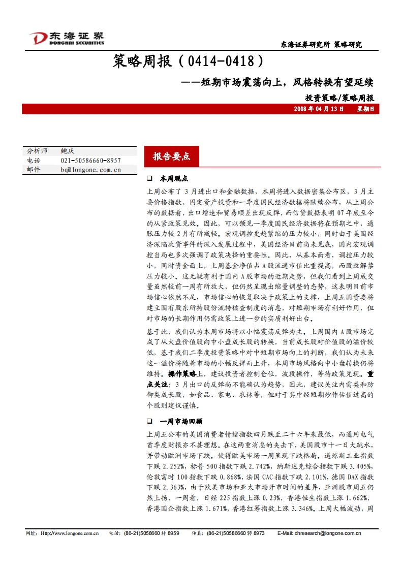 20080413-东海证券:策略周报(0414-0418):短期市场震荡向上 风格转换有望延续-19页