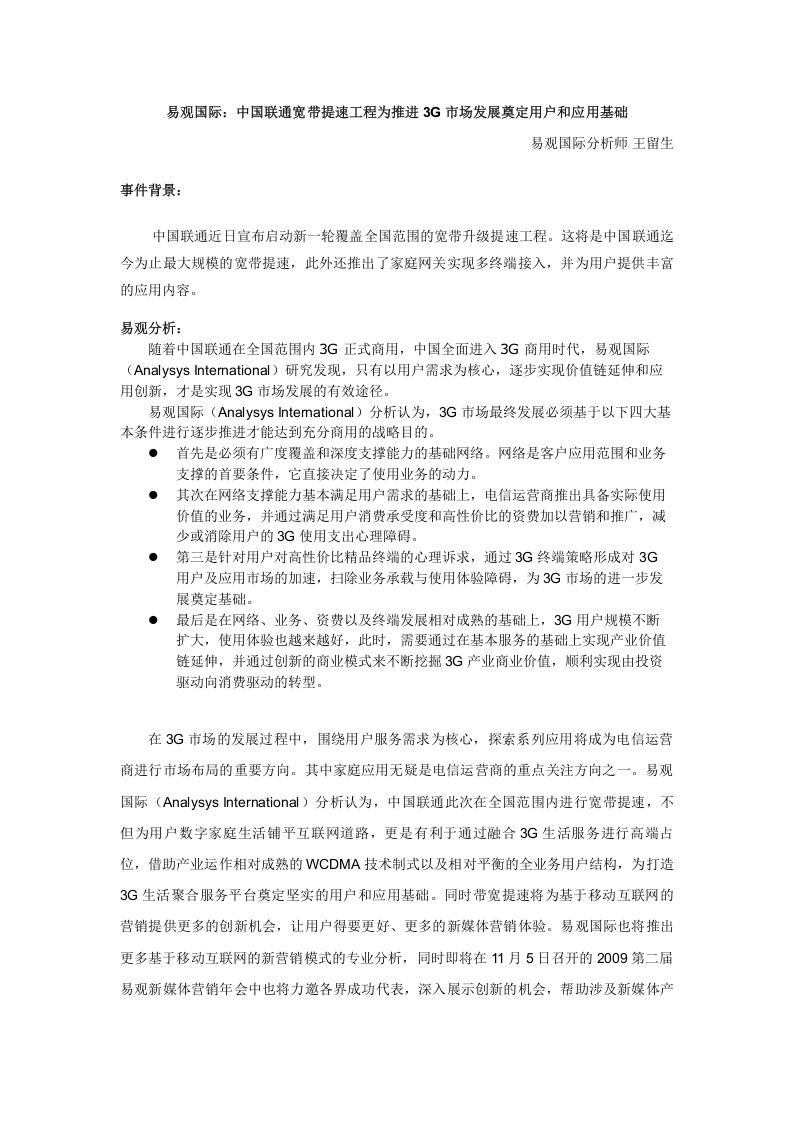 2016-12-23-易观国际--易观国际-中国联通宽带提速工程为推进3G市场发展奠定用户和应用基础