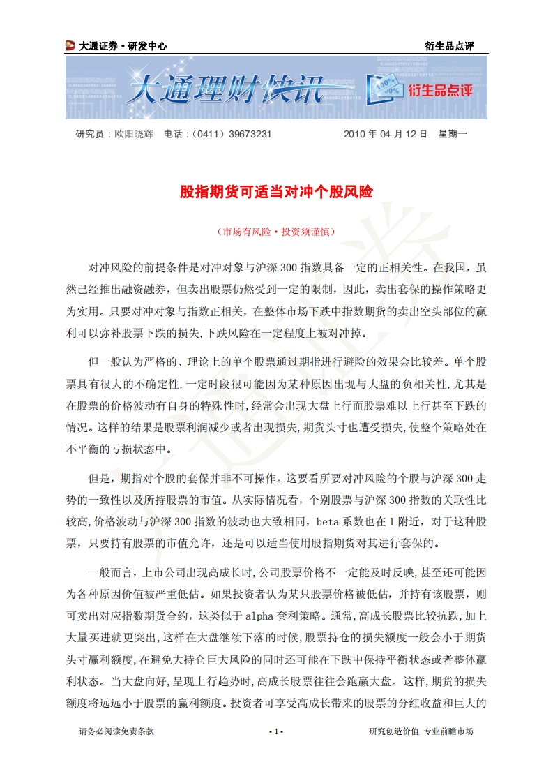 20100412-:-大通证券-股指期货可适当对冲个股风险-3页