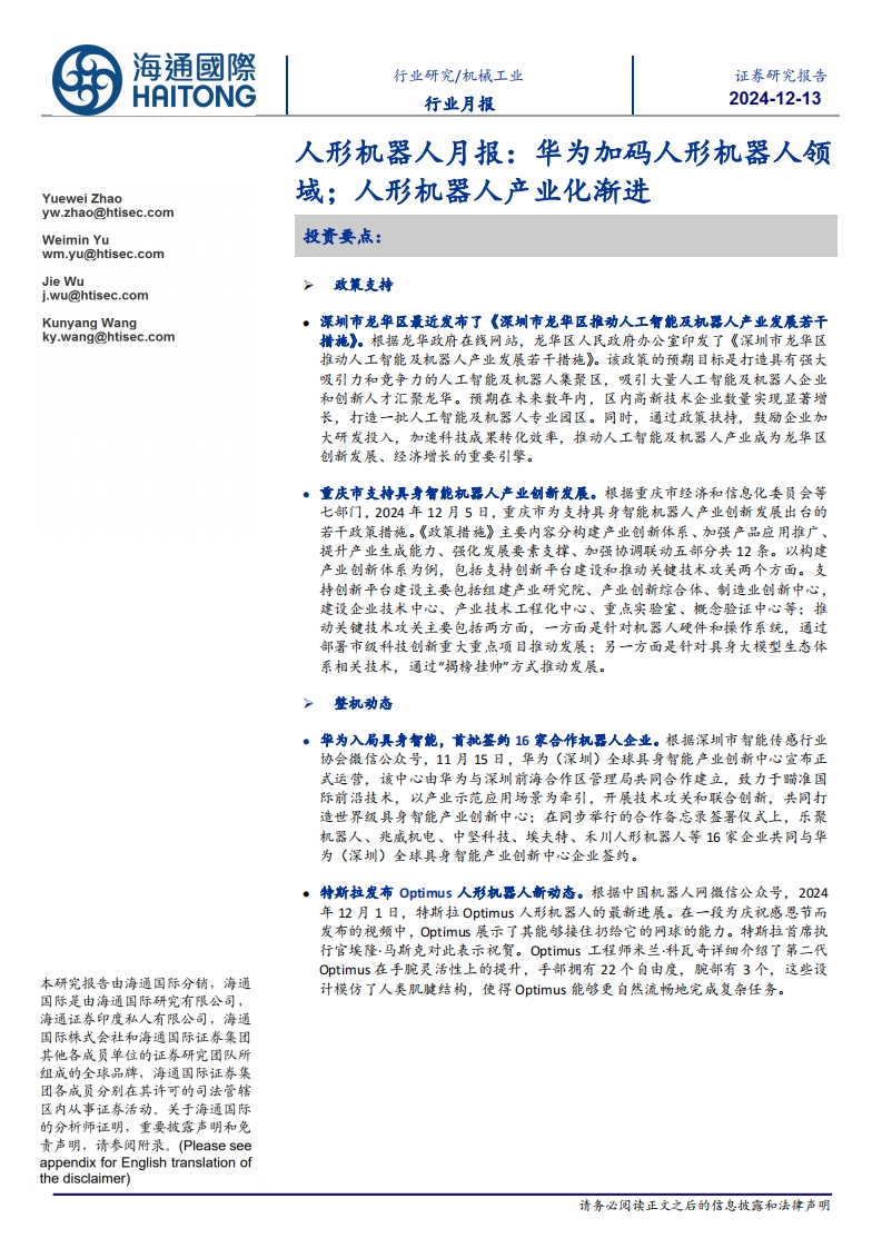 2024-12-13-海通国际--人形机器人月报:华为加码人形机器人领域;人形机器人产业化渐进