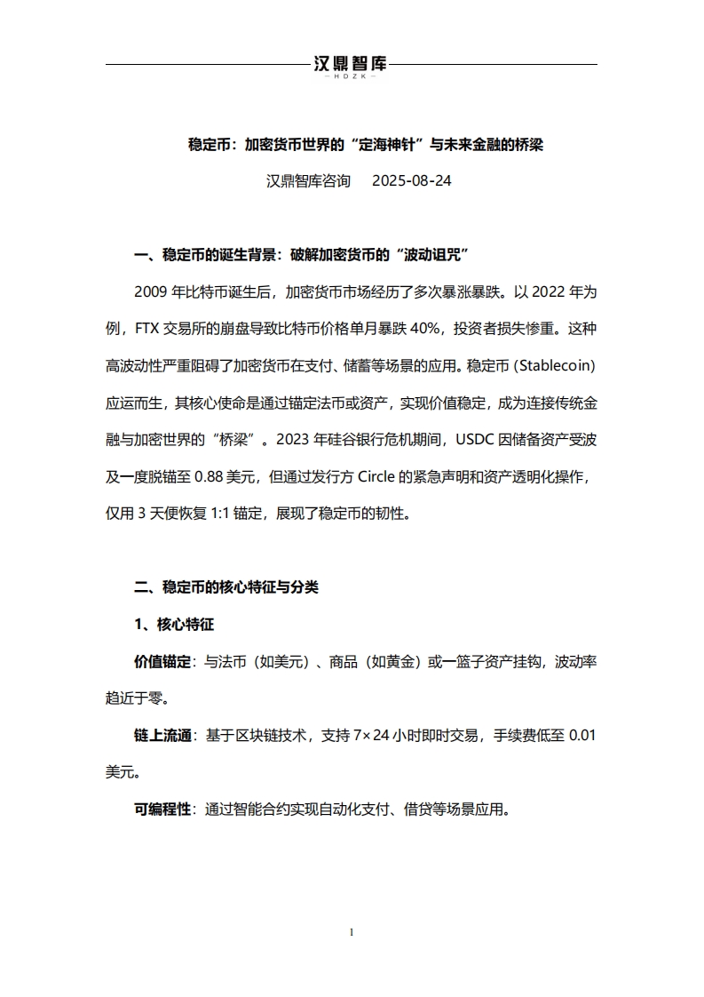 2025-09-04-深圳汉鼎智库咨询服务-稳定币:加密货币世界的“定海神针”与未来金融的桥梁