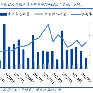 了解英国8月份新能源汽车销量情况,销量同比增长12%,单位为万辆。快来查看最新的数据图表43!