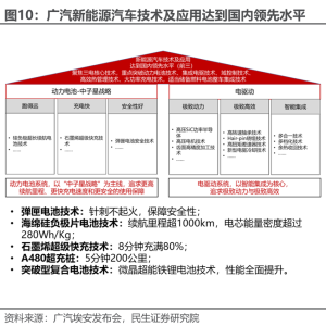 广汽新能源汽车技术在国内处于领先地位,应用广泛。