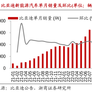 查看比亚迪新能源汽车的单月销量及环比增长率趋势图表,了解最新销售数据和市场表现。