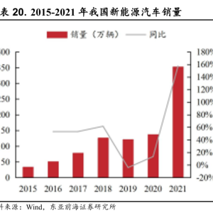 这张图表展示了2015年至2021年期间中国新能源汽车销量的增长率和趋势。数据涵盖了电动汽车和混合动力车型,对中国汽车市场未来发展具有重要指导意义。